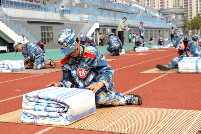 随后,举行了受训方阵的分列式,各受训方阵队列以饱满的精神、高昂的斗志、嘹亮的口号、整齐的步伐、恢宏的气势依次走过主席台,接受与会领导和部队首长的检阅。受训学生还表演了军体拳、内务比赛和战地救护表演等。