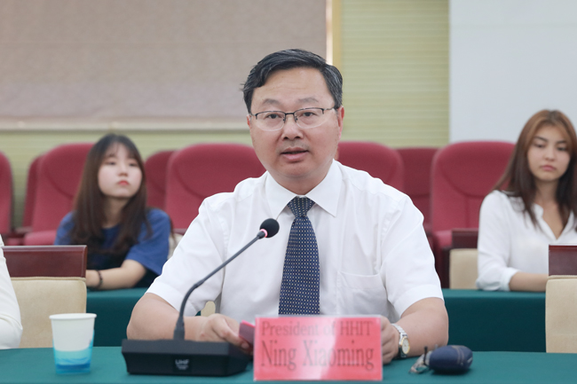 宁晓明代表学校致辞。他对全体留学生表示热烈欢迎,对任课老师、工作人员以及志愿者们的辛勤工作表示衷心的感谢。宁晓明表示,随着“一带一路”国家开放战略的提出,淮海工学院正在加快改革发展步伐。学校对留学生非常重视,希望留学生在淮海工学院学习期间,能够主动和周围的老师、同学沟通交流,尽快适应在中国的学习和生活,提高自己的汉语水平。同时,他也希望留学生能够积极参与到学校的各项活动中来,体验淮海工学院的校园文化和特色,充实自己的课余生活。