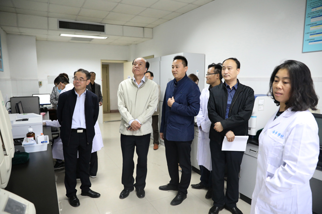听取汇报后,专家组仔细查阅了有关台账资料,并在陈先宏的陪同下,对我校海洋生物技术重点实验室及危险化学品仓库进行了实地检查。