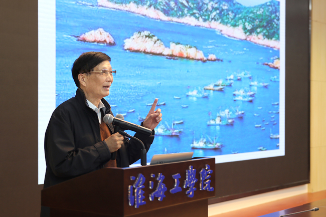 潘德炉作了《谈谈智慧海洋》专题报告。他结合党的十九大关于“加快建设‘海洋强国’”的背景,从关心海洋、认识海洋和经略海洋的高度,就建设智慧海洋的意义、内涵、方法、目标等作了深入浅出的阐释。潘德炉指出,智慧海洋是深度融合海洋环境、海洋装备、人为活动、管理主体四大板块的信息,智慧服务的技术体系;智慧海洋是信息与物理融合的海洋智能化技术革命4.0,是经略海洋的神经系统和我国海洋强国建设实施的长远战略抓手。最后,潘院士也对我校未来发展和江苏海洋大学创建工作提出了建议。