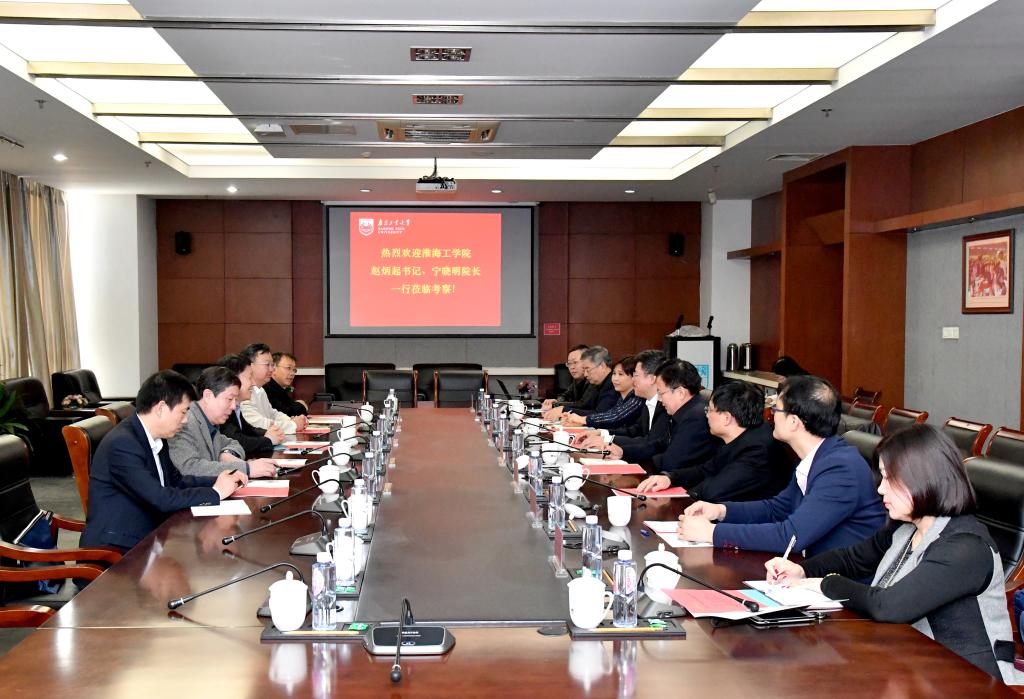 为了学习借鉴兄弟院校加强党建思政工作、培育申报重大科研成果、推动人事分配和职称制度改革的先进经验,全面提升我校办学能力和办学水平,扎实推进大学创建工作,11月8日,校党委书记赵炳起、校长宁晓明、副校长许兴友带领教务处、科技处、人事处等部门负责人赴南京工业大学学习调研。