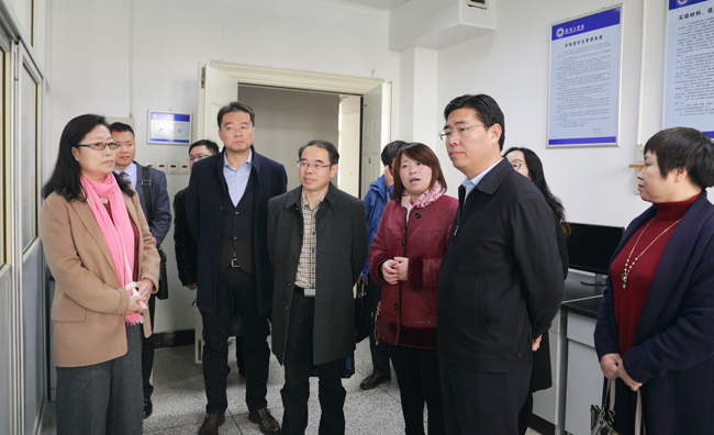 副校长陈先宏陪同曹卫东一行参观海资院分析测试中心