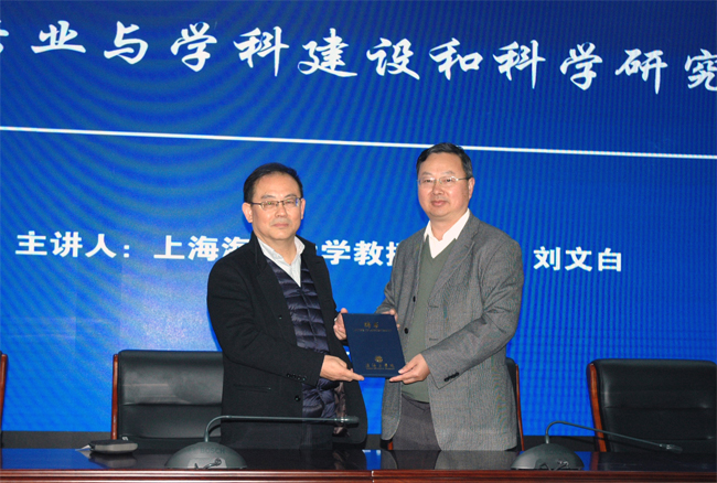 会前,校长宁晓明为刘文白颁发客座教授证书。