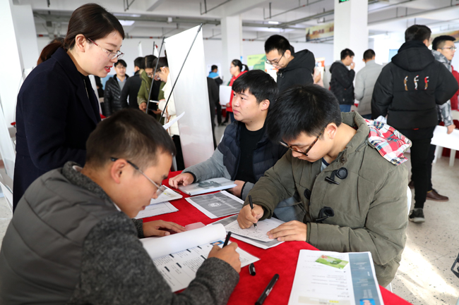 下午2点开始,招聘人员在工作人员的引导下陆续入场,在三个小时的招聘过程中,会场气氛热烈,应聘学生们手持推荐表及简历穿梭于人流之中,有序的与招聘人员进行交流,投递简历。