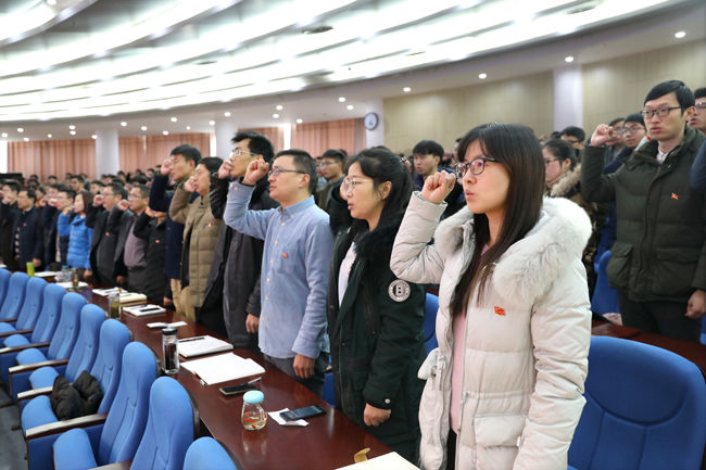 报告会在激昂的国歌声中拉开帷幕。副校长王洪法代表学校致辞,他指出,高校优秀辅导员“双巡”活动为广大辅导员和学生党员提供了非常好的学习机会,希望大家认真聆听、认真领会,充分发挥辅导员和学生党员在学习宣传贯彻党的十九大精神方面的示范引领作用。随后,学校党委学生工作部部长汤洪涛带领全场党员重温了入党誓词。