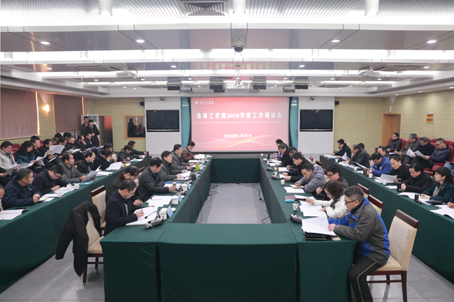 1月18日下午,我校2018年度工作研讨会在会议中心东海厅召开。全体校领导出席会议,各单位、各部门党政主要负责人参加会议。校党委书记赵炳起主持会议并讲话。