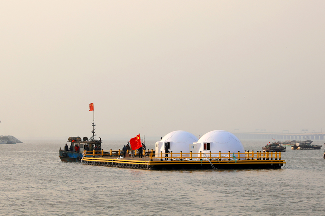 平台负责人徐军田教授介绍说,传统上很多涉及海洋生态系统问题的科学研究,主要通过实验室受控实验完成,但这种受控实验和野外原位的情况相差甚远,其得到的实验结论无法准确反映自然海区内海洋生态系统的变化。正是为了解决这个难题,国内外海洋研究工作者进行了诸多尝试,海上试验平台便应运而生。