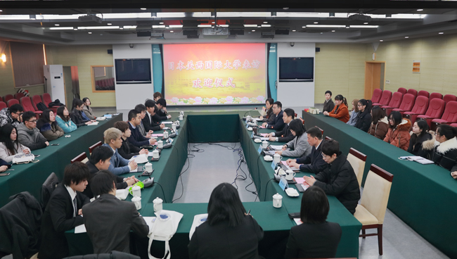3月6日上午,日本关西国际大学师生来访欢迎仪式在会议中心东海厅举行。校党委书记赵炳起出席仪式并致辞。日本关西国际大学来访师生,我校外国语学院党政负责人、国际交流与合作处全体人员及部分学生志愿者参加仪式。仪式由国际交流与合作处处长徐岚主持。