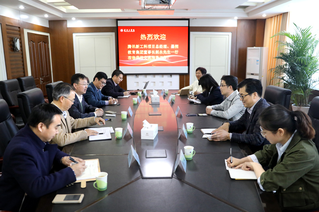 郭永介绍了腾讯教育在高校新工科人才培养、大学生创新创业教育、产学合作协同育人等方面的前沿性研究成果及与高校合作的资源优势,希望能在人工智能、云计算、大数据等方面加强与我校的合作。