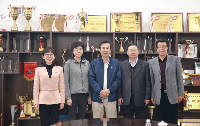 连云港市体育局局长张斌、江苏省新海高级中学校长韩金山、我校体育学院院长周庆功参加会见。