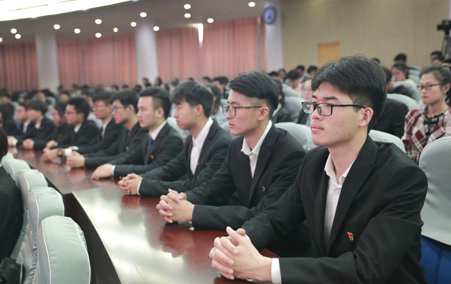 5月4日下午,我校2018年五四表彰大会在会议中心黄海厅举行。校党委书记赵炳起、副校长金芙蓉出席会议,党委组织部、党委宣传部、教务处、学生工作处和团委等部门负责人,各二级学院党委副书记、分团委书记,获奖代表及各二级学院300余名团员青年代表参加了大会。