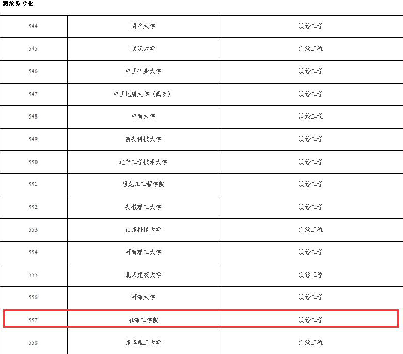 根据教育部6月12日发布的消息,截至2017年底,教育部高等教育教学评估中心和中国工程教育专业认证协会共认证了全国198所高校的846个工科专业。通过专业认证,标志着这些专业的质量实现了国际实质等效,进入全球工程教育的“第一方阵”。其中,测绘类专业有25所院校,淮海工学院名列其中。