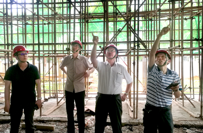 宁晓明指出,目前工程的施工进展顺利,工地现场管理比较规范,参建各方各司其责,施工按计划稳步推进。他强调,要强化质量意识,精益求精,严格按照规范施工,在确保安全的情况下,加快工程推进力度,优质高效完成建设任务,确保按计划顺利投入使用,把工科实验实训区工程建设成为师生满意的“民心工程”。对后期内部装修工作,宁晓明强调,要坚持节约、特色和实用的有机统一,提升校园楼宇的形象和品味,让师生更便利,让学校更美丽。