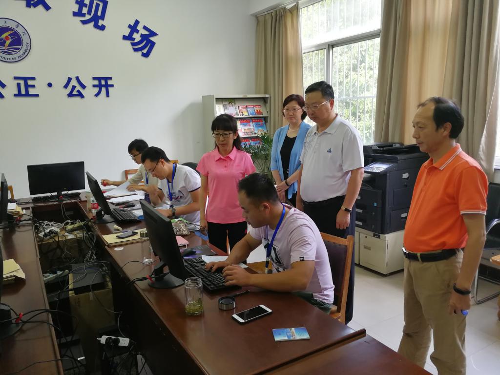 校领导听取了招生与就业处处长汤洪涛关于2018年招生录取工作进展情况的汇报,认真查看了招生现场的工作环境,详细了解招生录取工作进展、考生生源、设备保障和后勤服务等情况,并向全体工作人员表示感谢和慰问。