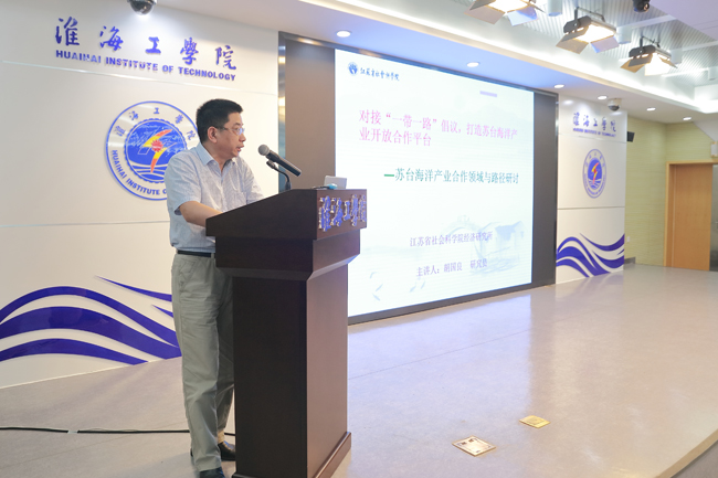 胡国良作题为《对接“一带一路”倡议 打造苏台海洋产业开放合作平台》的报告。胡国良提出,苏台海洋经济合作要对接“一带一路”倡议,抓住互联互通这个“龙头”,在海洋经济传统产业领域和新兴产业领域合作,实现“双轮”驱动,以联合培养海洋人才和联合开发共性技术为切入点,搭建诸如“苏台海洋产业合作联盟”民间性质的合作平台,使苏台产业更好更早地找到适合自己的合作契合点。他提议,首先在互补性强的海洋生物医药食品、海洋特种养殖领域开展深度合作。