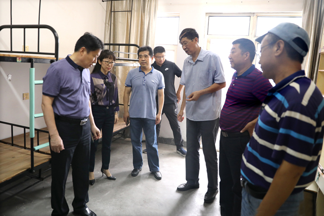校领导查看通灌校区学生宿舍