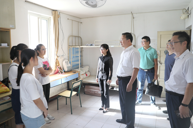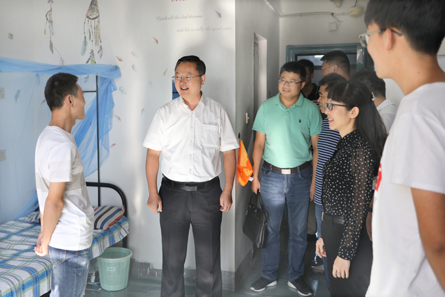 9月9日下午,校长宁晓明、副校长金芙蓉分别到通灌校区和宋跳校区看望慰问2018级民族预科生和新同学。校领导还专程来到部分家庭经济困难学生宿舍,为他们送去生活用品和慰问金。