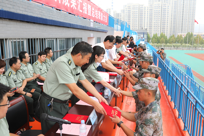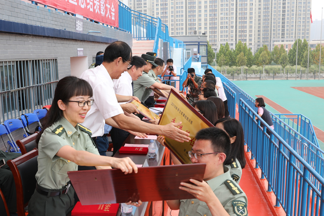 与会领导为军训先进集体和个人颁奖