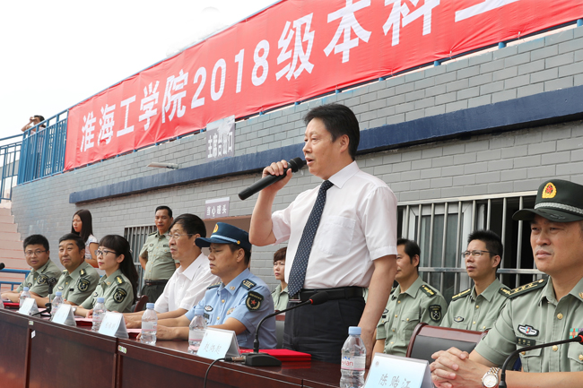 陈贻江讲话。他对我校2018级学生军训工作给予了充分肯定,并对广大学员提出了殷切的期望,希望大家巩固好军训期间所取得的成果,不断提高本领,刻苦努力学习,将爱国之心化为报国之行。