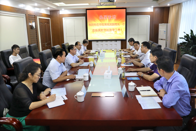 9月19日下午,淮阴师范学院副校长周俊波一行来校考察交流后勤工作。副校长陈先宏在行政楼二楼会议室接待了来宾一行。
