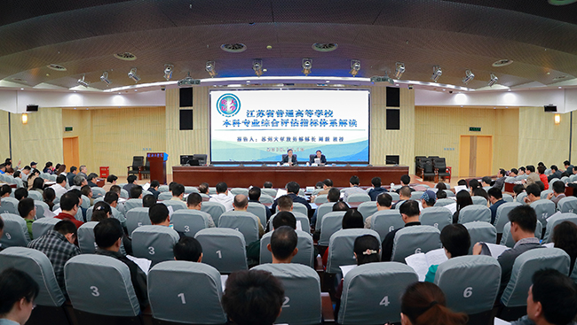 10月10日下午,我校在会议中心黄海厅举行专业综合评估指标体系解读报告会,邀请苏州大学教务部部长周毅教授解读江苏省普通高等学校本科专业综合评估指标体系。校领导、全体中层干部、校督导组、各系正副主任、专业负责人、实验中心主任和各二级学院教务科研办公室主任聆听了报告。报告会由副校长舒小平主持。