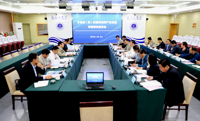 市教育局、市科技局、市委党建办、市经信委、市人社局、开发区管委会相关负责人,我校相关职能部门和二级学院负责人,康达学院等本地高(职)校和恒瑞医药等医药企业相关负责人参加了座谈会。