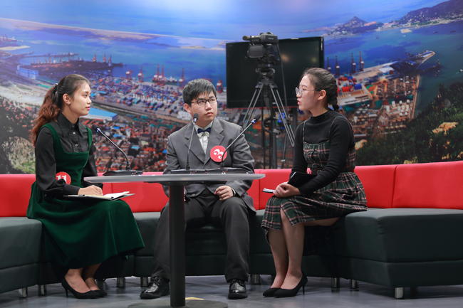 现场采访环节考察的是选手作为一名校园记者的思维应变与采访能力,受访嘉宾是来自淮海工学院的“各路达人”,有学霸、相声演员,创新创业典型,摄影发烧友,龙舟健儿……选手们有的进行幽默机智的提问,制造“快问快答”等环节,有的围绕嘉宾的经历展开一系列采访,与受访嘉宾默契互动,出色的表现赢得了评委和观众的阵阵掌声。