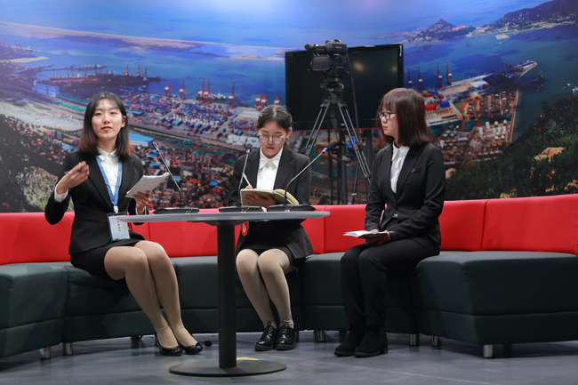 新闻评述环节考验选手语言表达能力和思维的逻辑性、敏锐度,选手三人一组,围绕“大学生在校创业的优势和劣势”、暑期游学、重庆公交坠江事件等社会热点话题进行现场评述,表达个人观点。选手们滔滔不绝,将新闻事件分析得鞭辟入里,现场气氛十分热烈。