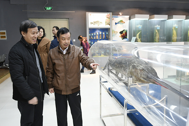 会前,葛世伦一行在许兴友的陪同下,饶有兴致地参观了我校海洋经济与文化研究中心、海洋馆、海洋工程技术研究中心。许兴友向来宾实地介绍了我校加强海洋学科建设、推动涉海研究的具体情况。