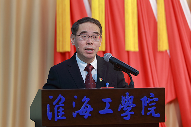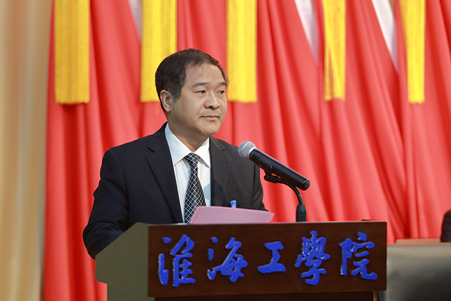 校民主党派代表、省政协委员、连云港市政协副主席、民盟连云港市委主委、学校发展规划处处长龚成龙致贺词