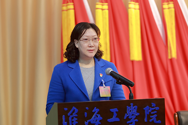 滕雯代表连云港市委,对大会的召开表示热烈祝贺。她指出,淮海工学院作为一所在改革开放的大潮中应运而生、逐步成长起来的高等学校,在学校党委的正确领导下,办学实力稳步提升,各项事业加快发展,综合竞争力明显增强。她希望即将产生的新一届学校党委,在新的征程上,要提高政治站位,把牢办学方向;要突出立德树人,实现全程育人;要全面深化改革,提升服务水平,不断把学校各项事业推向前进,为地方经济社会发展输送更多的栋梁之才。