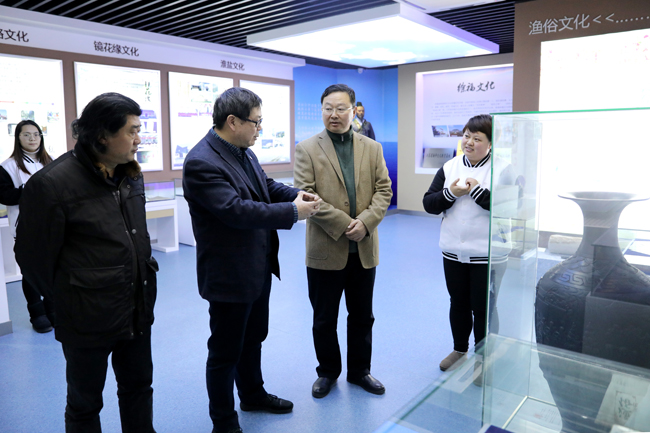 座谈会后,孙松一行饶有兴趣地参观了我校海洋经济与文化研究中心、海洋工程技术研究中心,实地了解我校在海洋经济与文化、海洋工程技术研究等方面的最新进展。