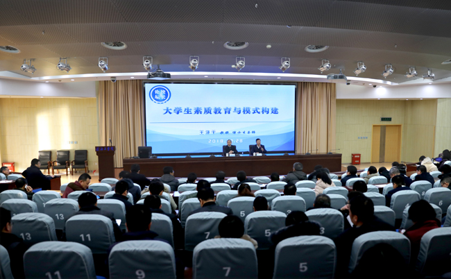 12月28日下午,河海大学博士生导师、江苏科技大学原党委书记王济干教授做客我校“校长论坛”,在会议中心黄海厅,作题为《大学生素质教育与模式建构》的报告。论坛由校长宁晓明主持。各二级学院党政领导,全体辅导员,班主任代表,教务处、教学质量管理处、研究生处、学生工作处、团委全体人员聆听了报告。