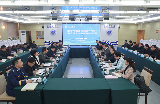 2月15日下午,连云港市人民政府市长方伟、副市长黄远征一行来我校调研,并在会议中心东海厅召开了更名江苏海洋大学工作现场推进会。全体校领导出席了会议。校党委书记王自力主持会议。
