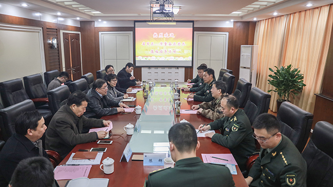 副校长金芙蓉从国防教育、征兵、军事训练、拥军优属、军事理论课教学以及大学生应急民兵排的指导等六个方面向调研组全面、详实汇报了我校人民武装工作的开展情况。同时,她也指出了当前工作中存在的问题,希望省军区和连云港警备区的领导协调解决。