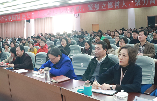 各二级学院党委副书记,学生工作处、团委全体工作人员,全体辅导员,马克思主义学院全体教师,部分班主任代表以及学生代表聆听了报告。