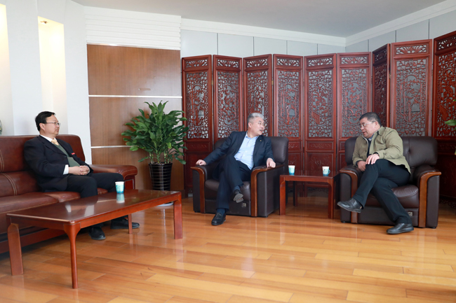 4月3日下午,中国海洋大学校长于志刚教授应邀访问我校。校党委书记王自力、校长宁晓明在行政楼二楼接待室会见了于志刚教授,双方进行了深入交流。