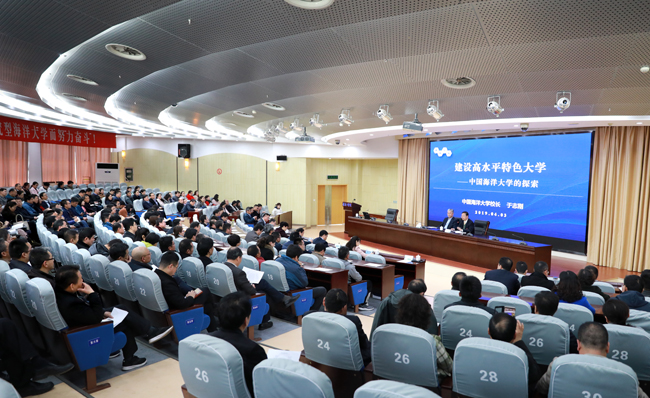 访问期间,于志刚教授在会议中心黄海厅作题为《建设高水平特色大学——中国海洋大学的探索》的报告,详细介绍了中国海洋大学的特色发展之路,强调指出高校应注重建设相互支撑的学科生态系统。于志刚还就学校建设发展的相关问题与大家进行了现场互动交流。全体校领导、中层干部,各二级学院系主任、实验中心主任,学校相关职能部门工作人员聆听了报告。