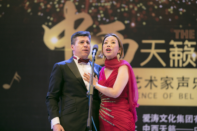 本场音乐会分“歌剧魅影”和“民歌中国”两个篇章。上半场,中外艺术家们先后为观众们演绎了8个西方经典歌剧剧目,以各不相同的音乐表现形式展现了西方经典歌剧文化。殷桂兰老师清唱《珠宝之歌》,周金星老师献唱《多么快乐的一天》,Robert Weintraub带来《圣歌》,“萌之声”合唱团创造性地演绎《席尔瓦,给我拿点水》。艺术家们还中西联袂,表演《让我们携手同行》(歌剧《唐璜》)、《离开巴黎》(歌剧《茶花女》)、《在那圣殿里》(歌剧《采珠人》)等剧目,精彩的演唱、优美的歌词,感人肺腑。