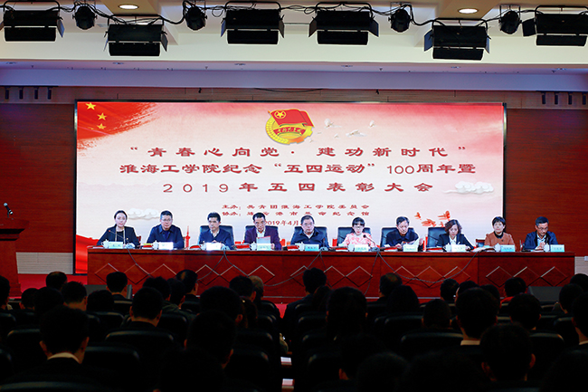 4月30日下午,淮海工学院2019年五四表彰大会暨纪念五四运动100周年主题教育活动在连云港市革命纪念馆隆重举行。校党委书记王自力、副校长金芙蓉、市委党史工作办公室主任、市地方志办公室主任徐勤飞、市革命纪念馆馆长白植明出席活动,我校党委组织部、党委宣传部、学生工作处、教务处、研究生处、团委等部门负责人,各二级学院党委书记、副书记、分团委书记,获奖代表及各二级学院200余名团员青年代表参加了大会。