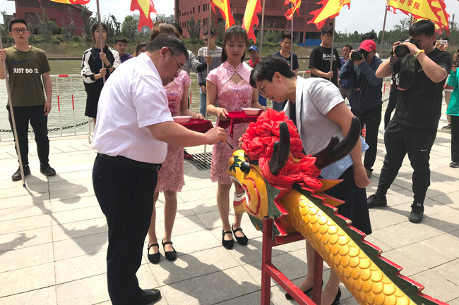 校领导为龙舟点睛