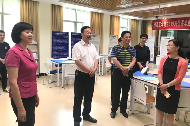 6月19日下午,校党委书记王自力、校长宁晓明、副校长严云洋观摩我校2019届优秀毕业设计(论文)展。各二级学院院长、教务处、教学质量管理处、设备与实验室管理处负责人等陪同参观。