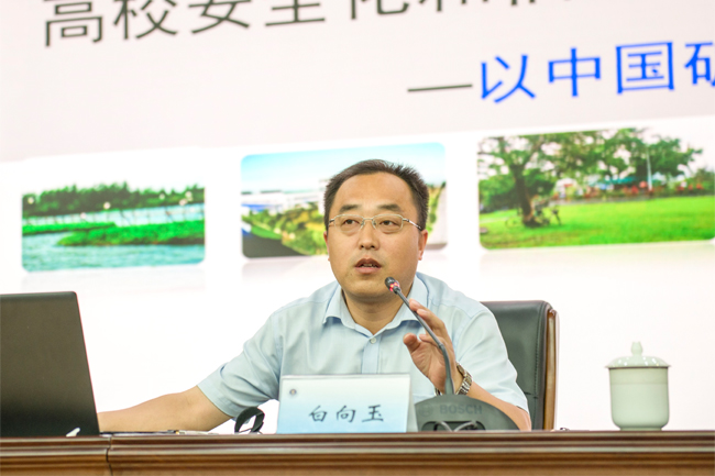 为进一步强化安全防范意识、规范实验室管理、扩充实验室管理人员和师生的安全知识储备,6月28日下午,我校邀请中国矿业大学环境科学与工程中心实验室主任、教育部和省教育厅实验室安全检查专家组成员白向玉教授在校会议中心黄海厅作题为“高校安全化与信息化实验室的探索实践”专题报告。报告会由副校长严云洋主持。