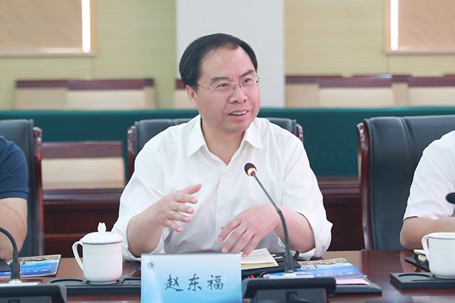 赵东福对我校获教育部批准更名江苏海洋大学表示祝贺。他还介绍了浙江科技学院的办学脉络,并简要介绍了该校更名进展情况。双方就学校更名工作组织架构体系及运行方式、相关申报材料数据准备工作、专家组进校考察情况等进行了深入交流。