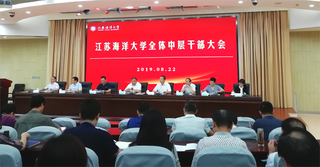 8月22日上午,我校在会议中心黄海厅召开全体中层干部大会,总结上学期工作,部署新学期任务。校党委书记王自力主持会议并讲话,校长宁晓明作工作报告。全体校领导出席会议。