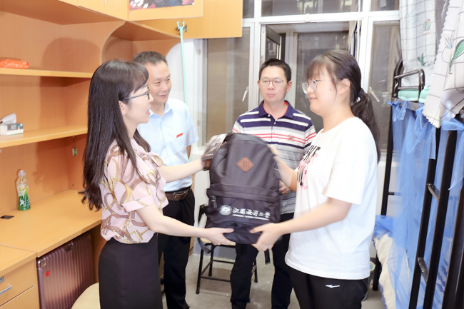 在通灌校区新生公寓,来自徐州的土木与港海工程学院新生冯政杰接过金芙蓉手中的慰问品,感到非常意外,激动地表示:“通灌校区的校园环境太美了,一想到一年以后要搬回苍梧本部,竟然有些舍不得呢。没想到校领导和老师们对我们如此重视和关爱,我一定会努力学习!”