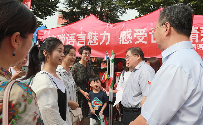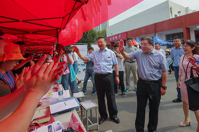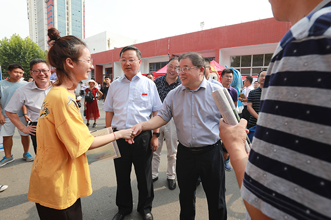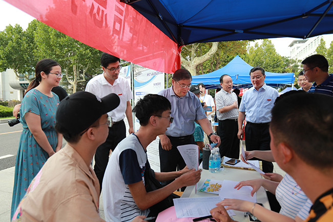 上午,校党委书记王自力、校长宁晓明、副校长许兴友、副校长金芙蓉一行在相关职能部门负责人的陪同下,先后来到苍梧、通灌和宋跳校区迎新现场,看望来自祖国各地的2019级新生及其亲友,慰问参与迎新工作的广大师生员工。