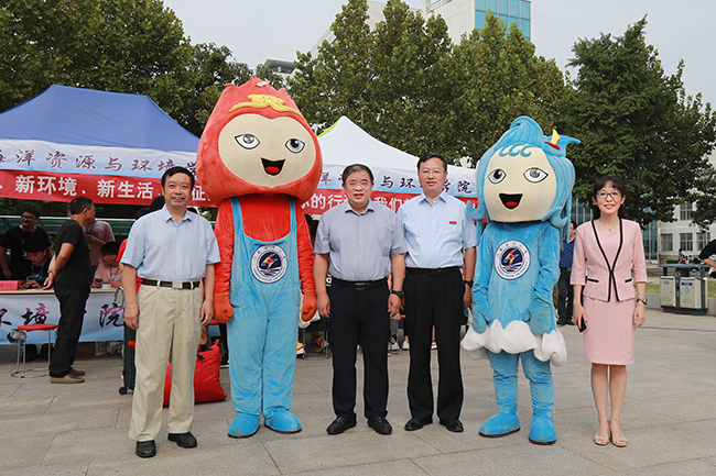 在苍梧校区,校领导走访了各学院迎新点,向迎新工作人员和志愿者详细了解迎新工作进展情况。在海洋资源与环境学院新生报到处,王自力听闻该院新生报到人数已经过半,非常高兴,对大家说:“感谢你们的付出,你们辛苦啦!天气依然炎热,你们自己也要注意防暑降温。”在电子工程学院迎新点,校领导停下脚步仔细观看该院学生的科技创新作品机器人展示,连声称赞:“科技感强,有学院特色!”一位来自安徽79岁的老大爷送孙子来校报到,宁晓明与大爷攀谈起来,询问来校感受,大爷表示:“学校比想象中的还要好,环境优美,老师和同学都很热情,住宿条件也很好,来江苏海洋大学是正确的选择。”