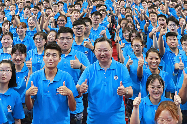 10名品学兼优的本科新生和5名硕士研究生获得“校长特别奖学金”,校长宁晓明为他们颁奖,并与受表彰的学生合影留念。