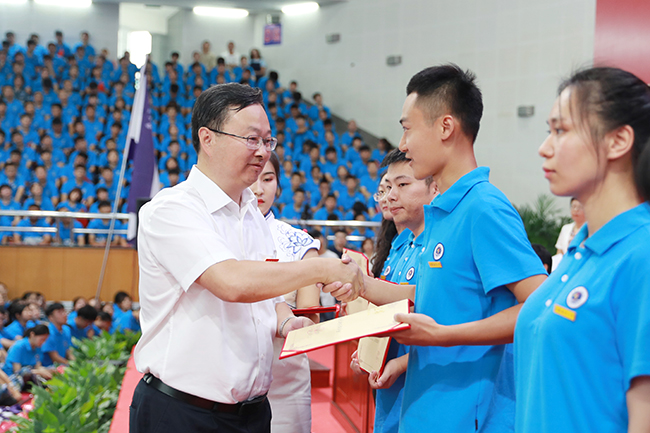 校长宁晓明以《学以成人 不负韶华》为题,发表了热情洋溢的演讲,为全体新生送温暖、送福利、送锦囊。